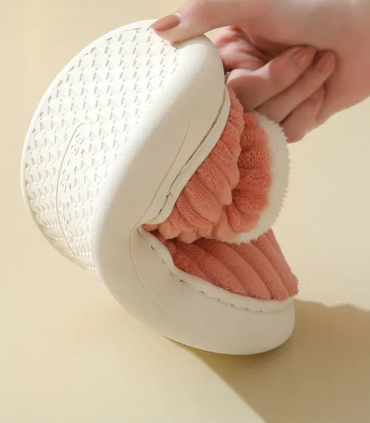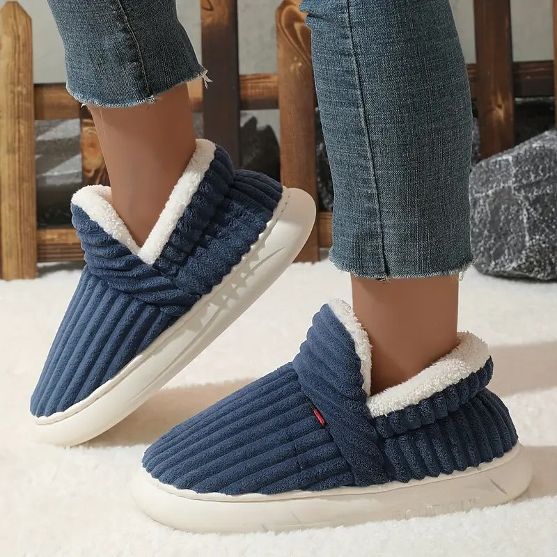 These super cozy winter slippers feature a flexible, thick sole for all-day comfort and plush, warm material.