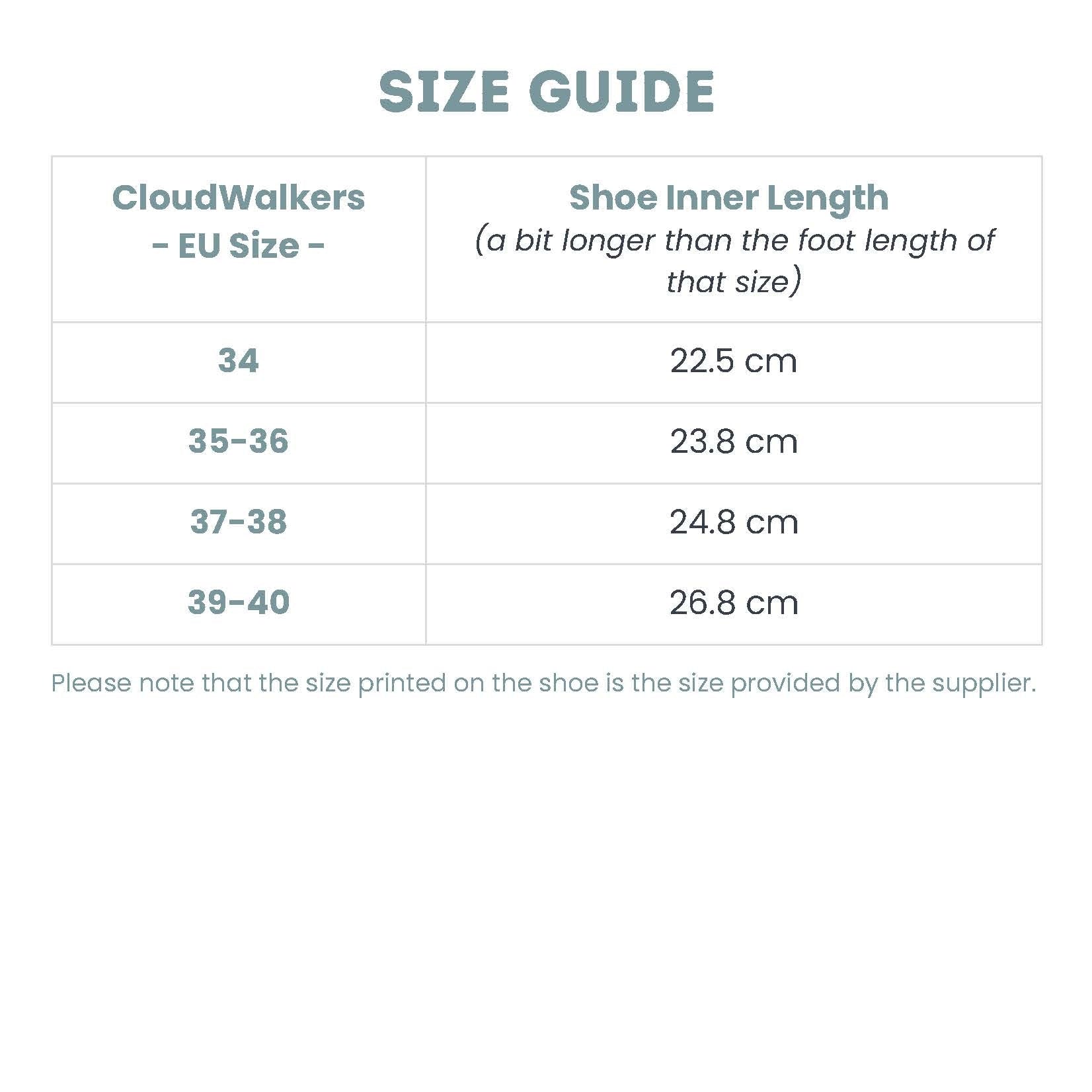 All our sizes refer to EU footwear sizes. Please refer to the size guide below for measurements.